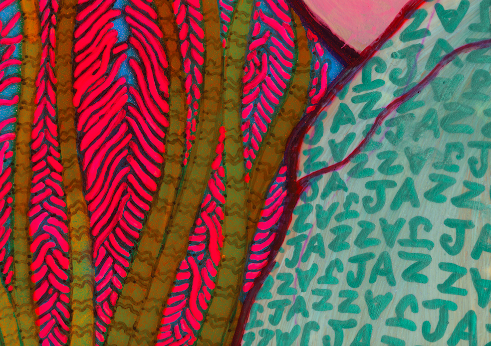 Original: acrylic and ink on holographic film Size: 17"x17"